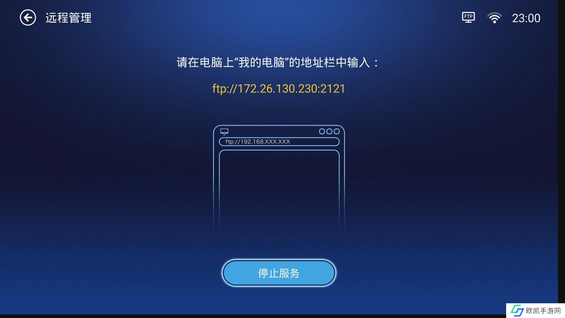 4、此时,华为荣耀盒子变成了一个ftp服务器,地址是类似“ftp://172.XX.XXX.XXX”的一串数字;