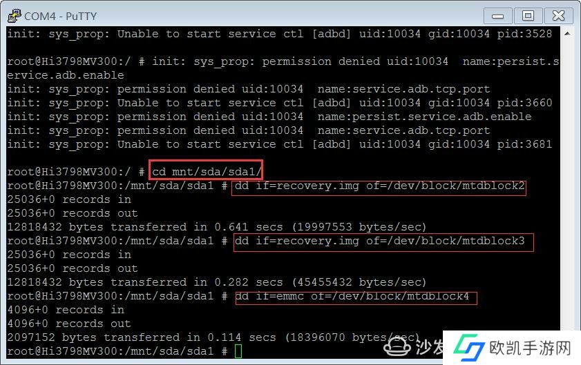 接着输入以下命令:cd mnt/sda/sda1sda1为U盘实际识别名称为准,自己TTL查看dd if=recovery.img of=/dev/block/mtdblock2dd if=recovery.img of=/dev/block/mtdblock3dd if=emmc of=/dev/block/mtdblock4reboot 这里顺带提一下,如果是EMMC闪存的机顶盒,就输入以下命令:cd /mnt/sda/sda*dd if=/mnt/sda/sda1/recovery.img of=/dev/block/**tform/soc/by-name/recoverydd if=emmc of=/dev/block/**tform/soc/by-name/miscreboot