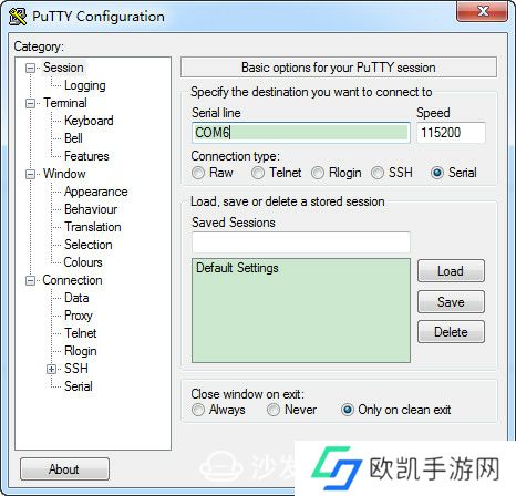 5.打开putty,按图中提示设置即可,COM后面的数字按照自己电脑的数字输入即可;