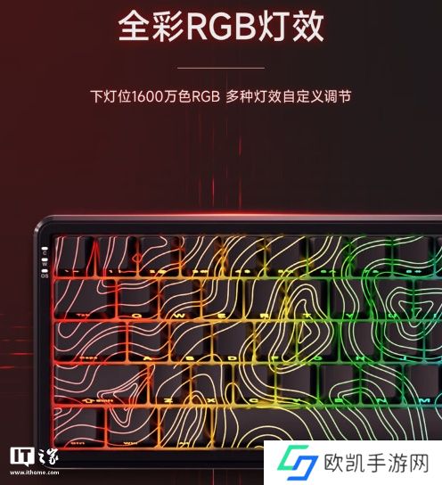 该款键盘支持动态键程自由调节,玩家可根据需求设置 DKS、MT、TGL、按键宏等功能,按键可按照最低 0.01mm 进行个性化设置(标准版为 0.1mm)。键盘还配备下灯位 1600 万色全彩 RGB 灯效。