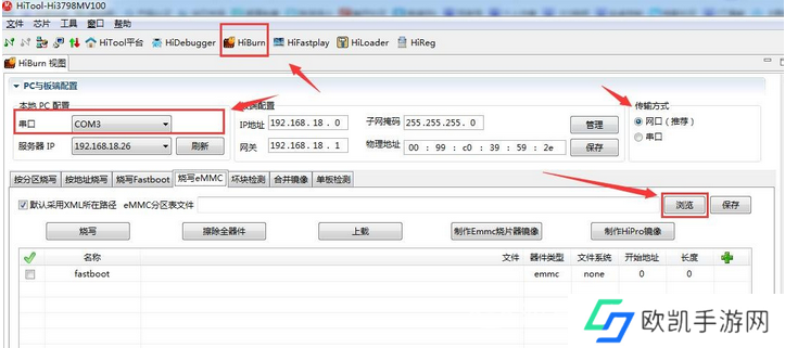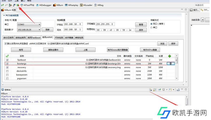 一、工欲善其事,必先利其器1.救砖文件下载1:https://pan.baidu.com/s/1mcFmwl69WGPThYJOKja4Pg 提取码:q8rw备选链接2:https://share.weiyun.com/wvM7A02V 密码:v52e2o备选链接3:https://115.com/s/sw3viri3z1i# 访问码:tf162. 海思烧写工具下载:http://pan.baidu.com/s/1miwQxg0密码:e38o海思烧写工具需要JAVA的环境,大家可以直接参考这篇百度经验的教程:http://jingyan.baidu.com/article/e75aca85508d15142edac6b8.html4.HiTool工具使用说明http://wenku.baidu.com/link?url=vCmbOdpxpEUPArS4QuiuwnxKJLKYrNRhrw5C1V9iNrbywpHHoxw0o_Kx8rRxwkW5UduySoe2s-uIPqaLU-3_x0FWdSwrIiA_0z4vTJSkrCO5.注意:本救砖文件只适用于1g+8g(1g+4g勿用!)1、华为悦盒交流群:129906863二、开始华为悦盒救砖1.将海思烧写工具全部解压出来,接着打开“HiTool.exe”,选择芯片“HI3798MV100”,将TTL连接好,串口选择对应的串口、服务器IP、版端配置保持默认、传输方式选择“网口”;2.将救砖文件解压出来后,选择“烧写eMMC”—“浏览”,导入解压出来后的“华为悦盒eMMC.xml”;