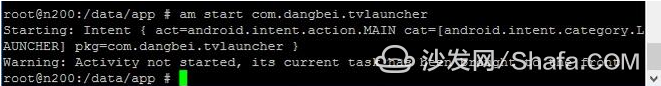 1.start adbd(打开adb)2.df(查看U盘路径)3.cd /storage/external_storage/sda1(进入U盘)4.Ls(查看U盘中的文件,主要是查看沙发管家和沙发管家桌面在不在)5.cp shafa1.apk /data/app cp shafa2.apk /data/app(复制沙发管家和沙发管家桌面到盒子应用中)6.cd /data/app(进入盒子应用目录)7.ls(查看app路径下是否有沙发管家和沙发管家桌面)8.am start com.shafa.tvlauncher(启动沙发管家桌面)