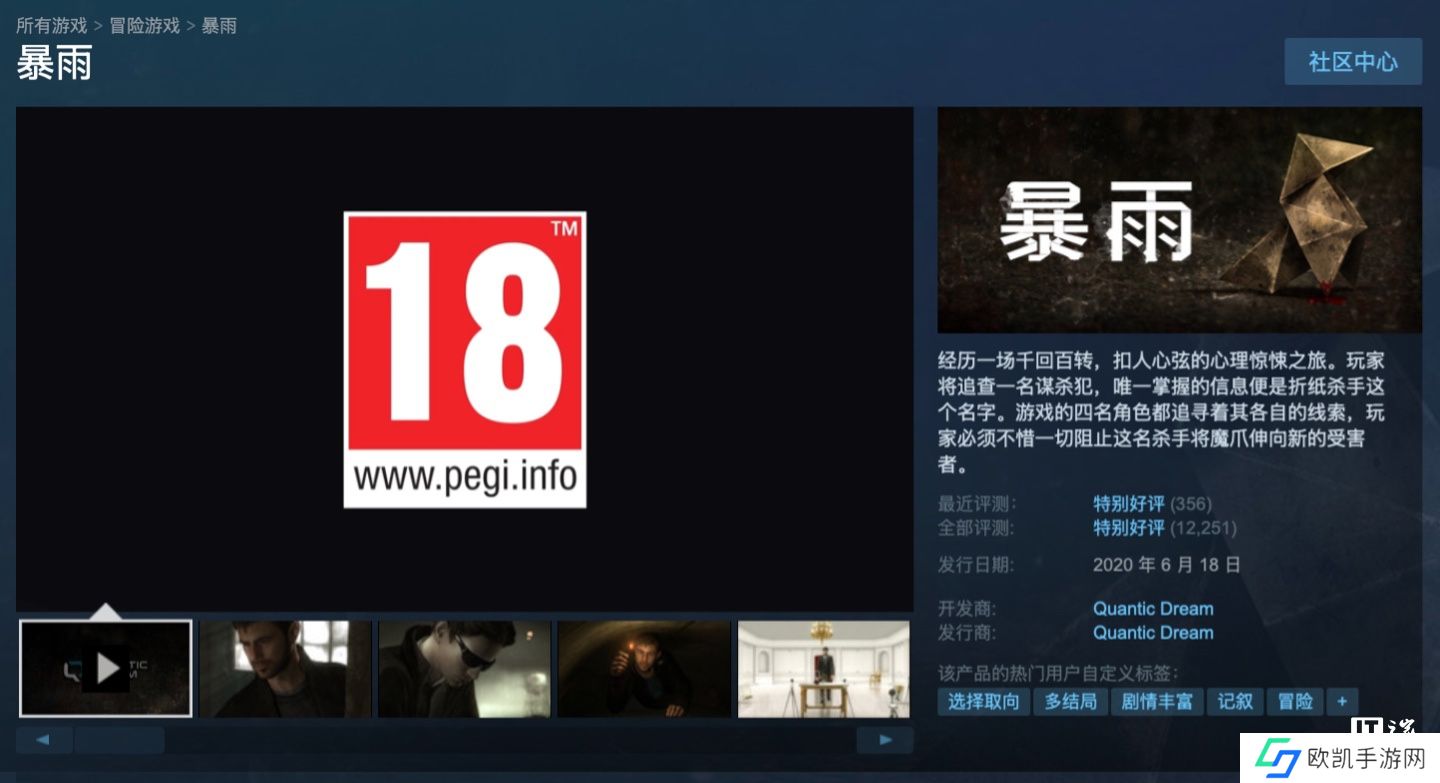 本站 11 月 22 日消息,发行商 Quantic Dream 宣布旗下经典侦探游戏《暴雨(Heavy Rain)》在 Steam平台开启2.5折史低优惠,游戏在国区原价68元,现折扣后17元,优惠将于11月26日结束,本站附游戏商品页如下(点此访问)。