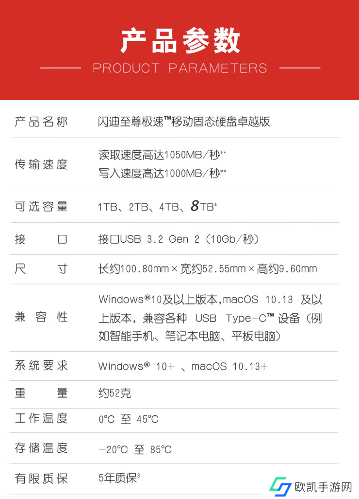 规格方面,这款硬盘写入速度1000MB/s,读取速度1500MB/s,配备USB-C 3.2 Gen 2接口。