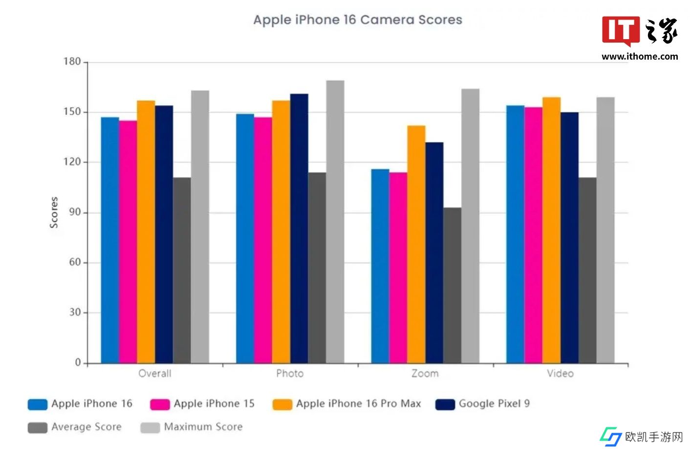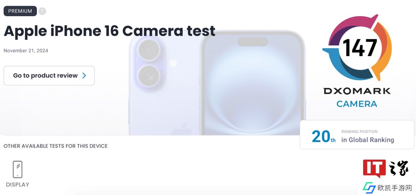 本站 11 月 23 日消息,DxOMARK 公布了苹果 iPhone 16 的影像测试得分。经测试,苹果 iPhone 16 以 147 分的总分,名列 DxOMARK 全球影像排行榜第 20 名,同时超越苹果 iPhone 15 / Plus(145 分)、iPhone 14 Pro / Max(146 分)及三星 Galaxy S24 Ultra(144 分)等机型。
