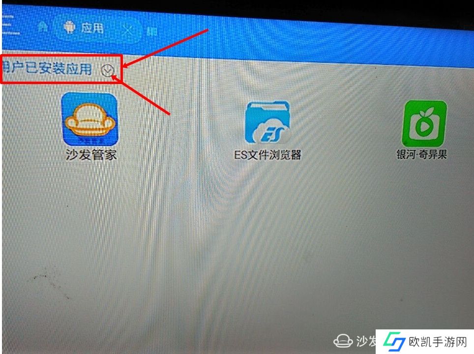 如未出现沙发管家则点击“用户已安装应用”,点开旁边向下箭头切换到“系统应用”里,看看有没有沙发相关的 软件,如果有也可以从里边切换到沙发桌面 后续的再弄默认桌面▼