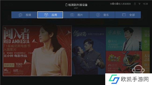 将下载好的apk安装包复制到U盘。2、将U盘连接天猫魔屏投影仪的USB接口,系统检测到外接设备,会弹出对应的菜单,选择“应用”并打开。