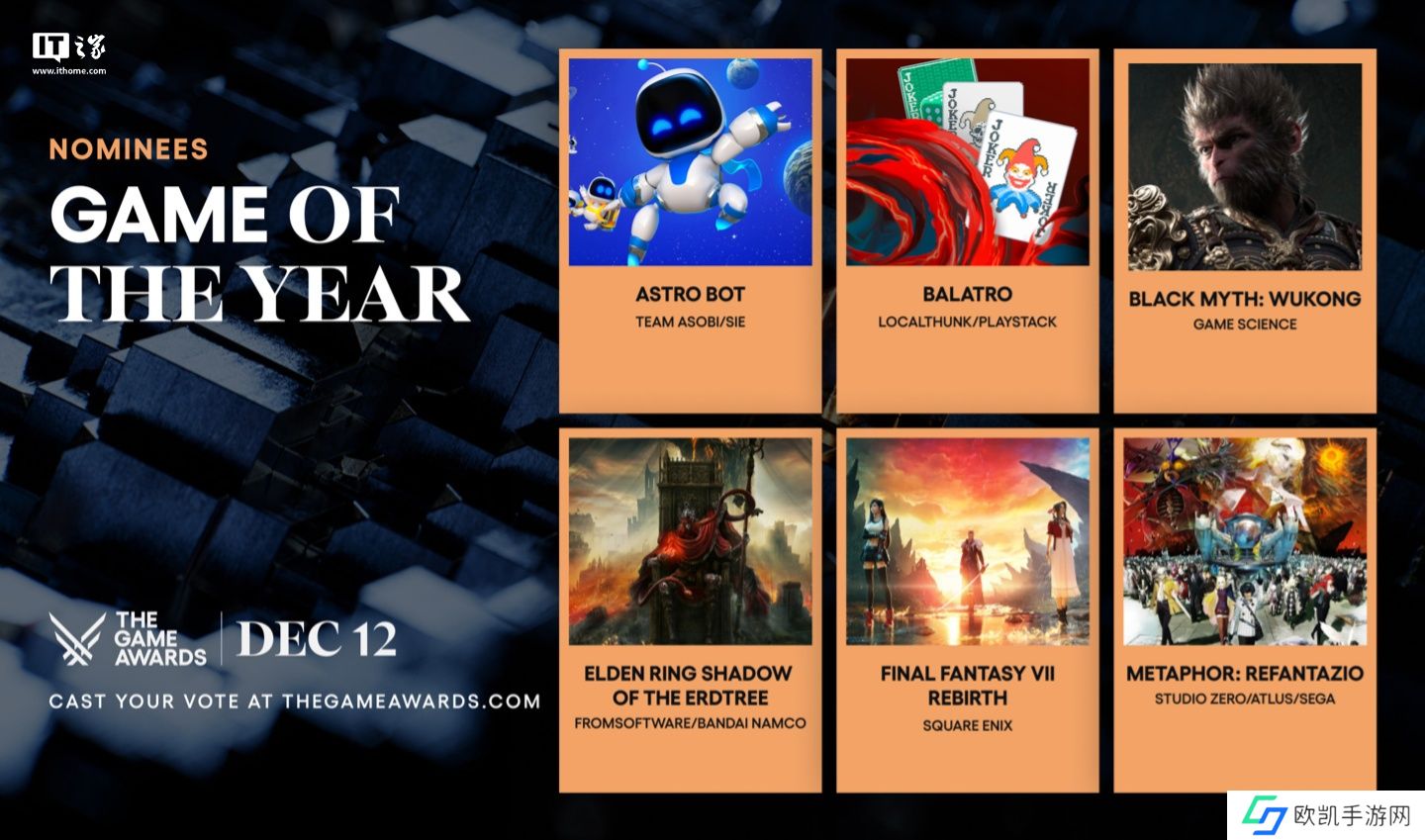 TGA 官网现已开放网络投票,大家可以选出你心中的 2024 年度最佳游戏,B站也即将开启相关官方投票: