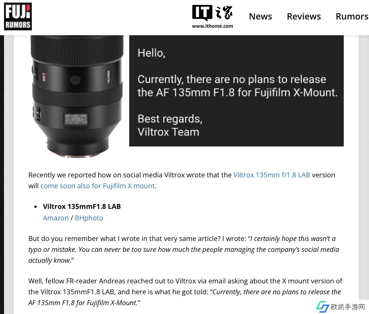 此后唯卓仕告知外媒FujiRumors称他们将推出这款镜头的富士X卡口APSC版本,但目前唯卓仕又改口称其“目前没有计划”推出相关版本镜头。