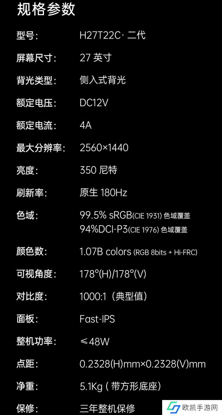 本站附 KTC 27 英寸显示器“H27T22C 二代”规格参数如下: