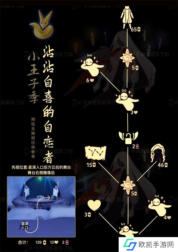 《光遇》即将在6月27日复刻小王子季·虚荣先祖,在复刻期间完成任务即可兑换丰厚奖励,不少玩家不知道虚荣先祖在哪?先祖位于禁阁星漠入口背面舞台的右侧雕像那里。接下来分享一下复刻先祖详细位置吧!