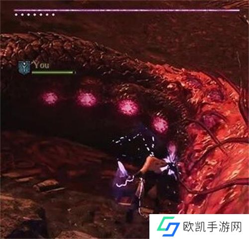 1.进场先「请求支援(Help)」,拜托随从帮你放「加速」,通常都不会理你,所以不用等,直接去砍尾巴两侧的粉红小点(弱点)。