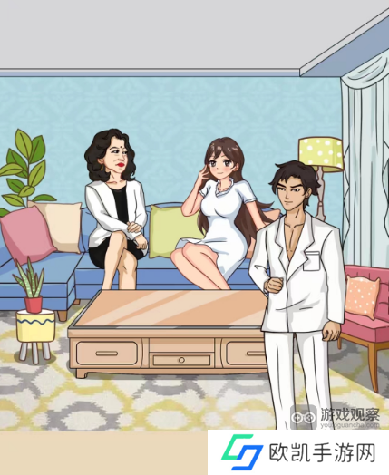 2、第二个物品栏:妈妈拿茶杯、宝石戒指,女儿拿裙子、智能手机、钻石戒指、工资卡、汽车钥匙;男友拿牛仔裤、拖把、老年机羊羔、电动车钥匙;拖动古画到墙上;饭莱拖到桌子上