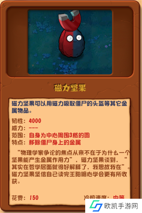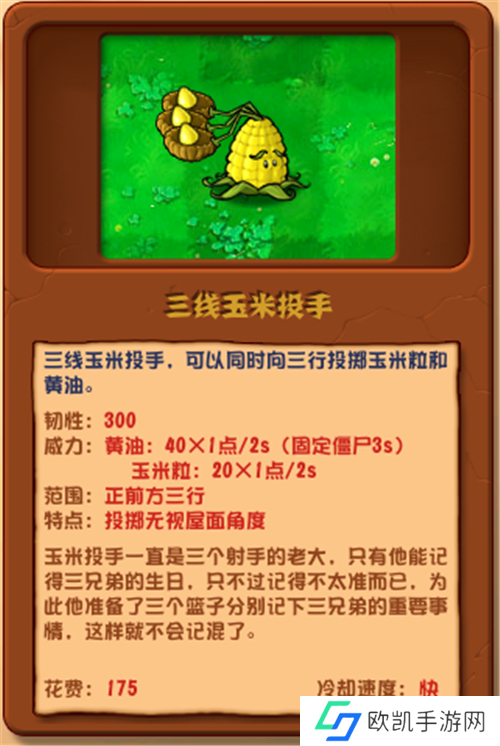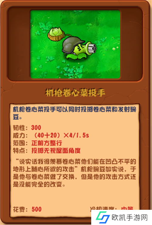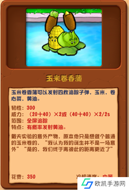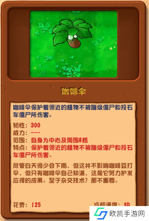 点评:硬度可观,对豌豆许愿池和香蒲类有奇效,战术辅助不可或缺。