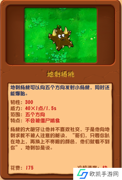 点评:伏地而生,虽能抵御僵尸啃食,但五向杨桃火力略显分散,期待未来强化。