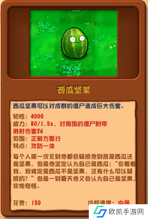 点评:坚果与西瓜的完美结合,短时间内守护一排,拖延时间效果显著。