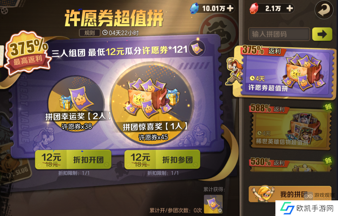 指挥官们注意啦!部分拼团首次开团和参团可享受折扣优惠,具体可点击拼团标题下方的规则按钮查看哦~