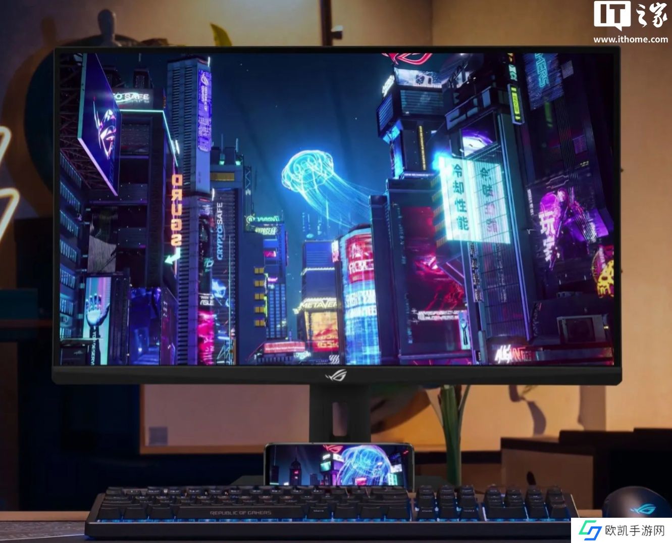 此外,本站注意到这款显示器自带一个可以放手机的底座,显示器支架支持升降旋转,提供1个HDMI 2.0 接口、1 个DP1.4 接口、1 个 USB-C接口。