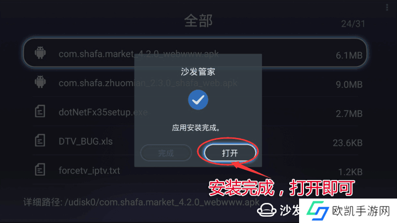 如仍无法读取U盘建议先将U盘格式化为FAT32格式(U盘内若有其他内容,先导出再格式化)或者换个U盘重新尝试。若安装失败,重启设备再按步骤重试。仍有疑问请添加下方沙发管家官方QQ群。用智能电视看点播视频,推荐使用腾讯视频;看电视直播,推荐用电视猫;更多有趣的内容,请用优酷视频TV版、电视家;玩转智能电视及盒子,更多精彩内容尽在沙发网。