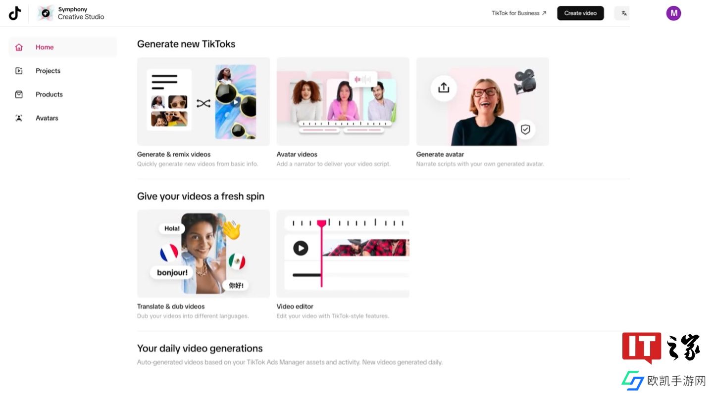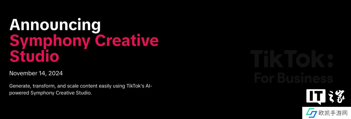 本站 11 月 23 日消息,据 TikTok 官方新闻稿,TikTok目前在海外上线了一款免费生成式 AI 视频制作平台“Symphony Creative Studio”,旨在为广告主和内容创作者(TikTok 商务用户)提供高效的广告短视频生成、编辑、翻译和语音合成功能。