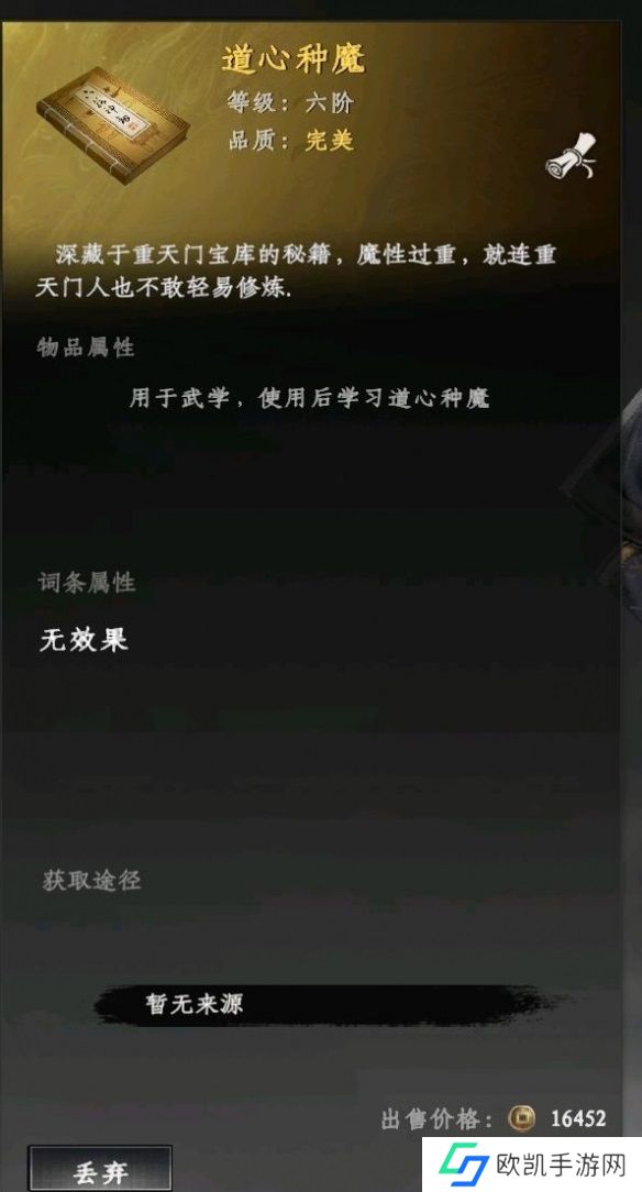 5. 夺权后会直接成为掌门,获得一本金色秘籍道心种魔,道心种魔属性见下图。