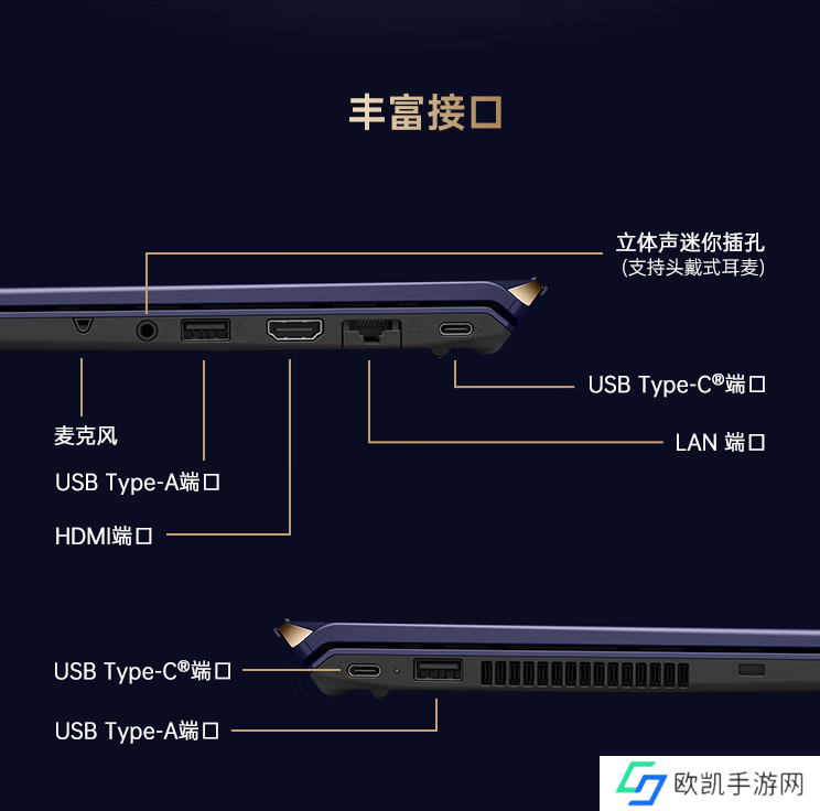 此外,该机配备14英寸2560x1600分辨率触摸屏幕,内置920 万像素摄像头;机身左侧配备1个USB4接口、1个 USB-A 3.0接口;右侧配备1个 USB-A 3.0接口、1个 3.5mm音频接口、1个 HDMI接口、1个 RJ45 接口、1个 USB4接口。