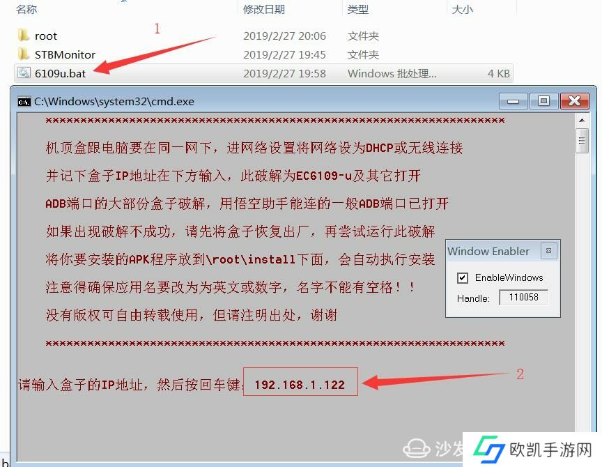 6.打开EC6109u.bat文件--输入IP地址---回车即可: