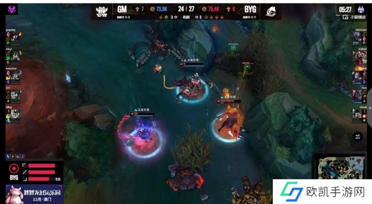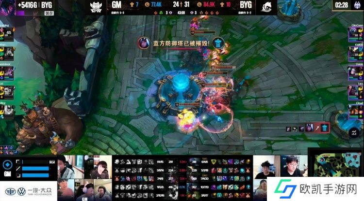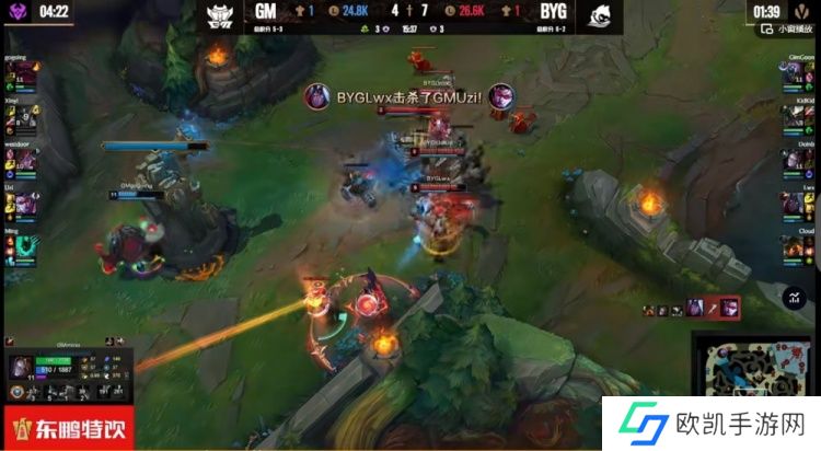 【8:30】GM再次下路四越二,这次Kid斯卡纳还是支援到位,不过GM还抗塔还是强杀掉了BYG下路组,西门的阿萝拉被换掉!