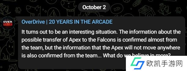 “目前情况很有趣。关于apEX可能加入Falcons的消息几乎得到了队伍的证实,但他哪也不去的消息也得到了队伍的证实。我们究竟该相信谁?”