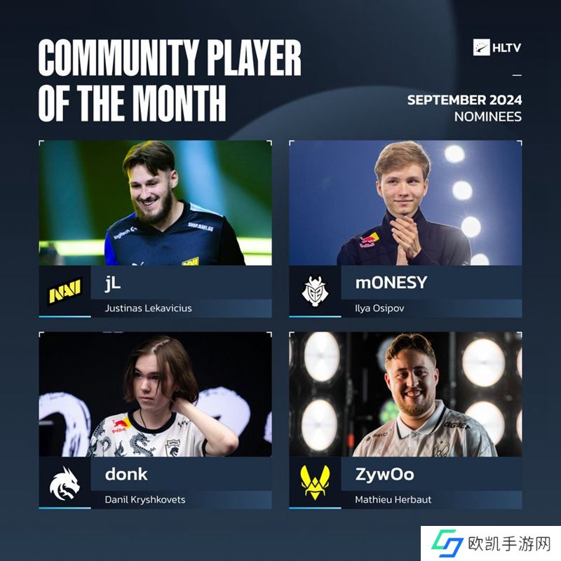 昨天HLTV在社交平台上进行了9月选手的评选活动,一共四名职业哥争夺九月选手的荣誉,分别是jL、m0NESY、donk和ZywOo。