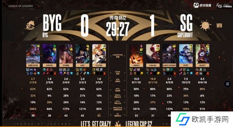 SG:上单Langx、打野Kakao、中单xiaocaobao、下路Puff、辅助Heart