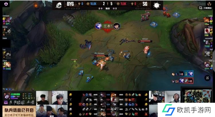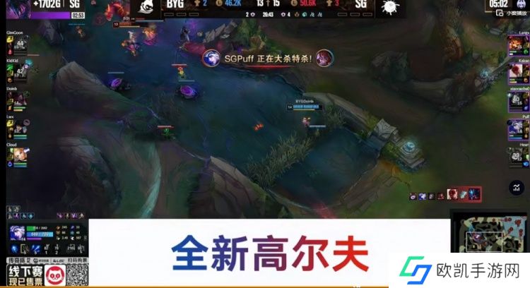 【17:08】SG推掉中一塔想强杀Lwx女警,但是Kakao盲僧没有踢回Lwx女警,反而被BYG反打换掉了野辅!BYG的0换2!