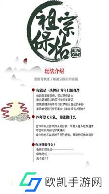 祖宗保佑是一款文字类型的休闲手游,游戏中玩家做为一名家族的先祖,必须保证自己独特的方法将自己所属的家族进行经历各类朝代更替过后,仍然能够长盛不衰的繁衍下去,一旦后代子孙中有叛逆的出现,玩家必须马上采取行动劝阻,不然就会产生各种的处罚方式,影响家族的血脉延续。