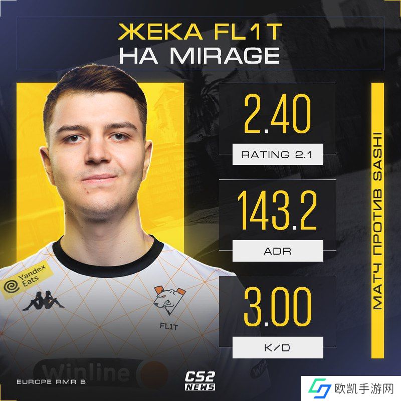 Sashi战队顺利晋级上海Major。本场比赛VP队内步枪手FL1T在决胜图Mirage上打出24-8 K-D,143.2 ADR和2.40 rating的惊人数据,助力队伍取得胜利。