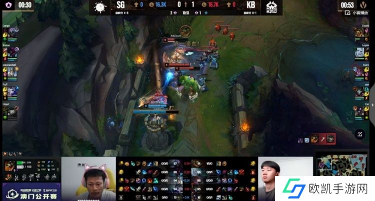 【17:20】上路KB五越三成功,用Cat牛头一条命换掉了SG三人!Leyan佛耶戈再次双杀!KB拿到5K经济优势!