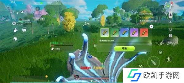 抓普通坐骑只需要喂食对应的食物即可,需要什么食物只需要点击该生物喂食便会有提示需要喂食的食物。如下图,通常情况下普通坐骑周围就生长着可抓捕喂食它的食物。