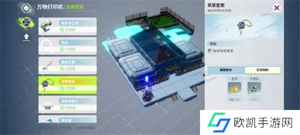 完成主线节点打印之后会解锁草原套索,这是抓捕草原生态坐骑必要的道具。随着游戏的推进,可以解锁其他生态的套索。