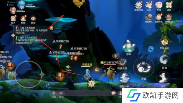 后面依照主线引导帮库洛捡哨子,完成后库洛就会打开接下来的通道(如图路线)。主要是这个蘑菇太像背景了,我没想到还能踩,而且目标位置箭头只是表明方向,没有路线出现,我来回找了一圈才发现。