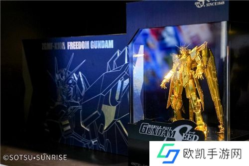 老凤祥x高达SEED联名的自由高达金像在ChinaJoy万代南梦宫展台展出
