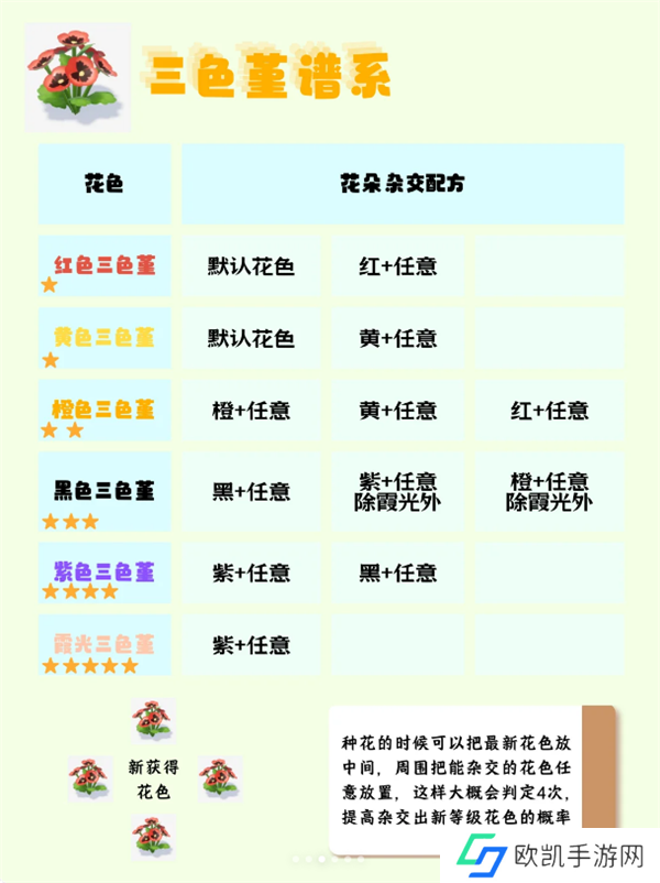 3、最新获得的花的种类可以放在十字的中心,增加判定次数,提高高星杂交概率。