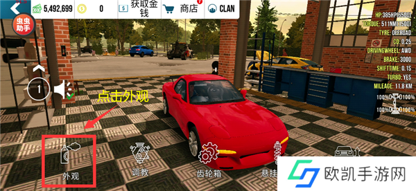 轻松进入车库,选择“外观”选项。