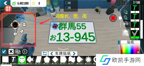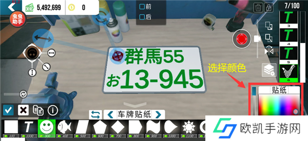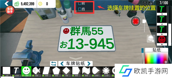 选择车牌贴纸,放置到合适的位置。
