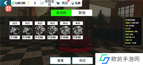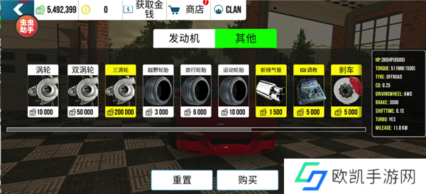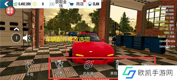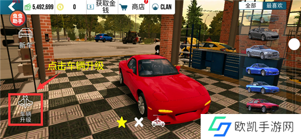 从车库出发,进入“车辆升级”界面。