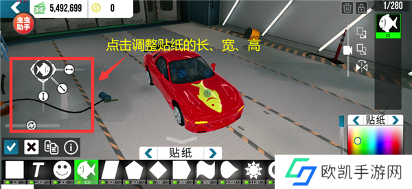 右下角选择颜色,并调整贴纸的尺寸。