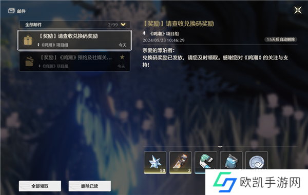 奖励:星声*50,特级共鸣促剂*2,中级复苏吸雾*2,中级能量袋*2,贝币*10000