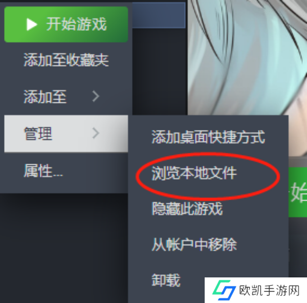 3、先找到游戏图标右键,然后选择打开文件所在位置,或者在steam里,找到游戏,右键选择管理,然后选择浏览本地文件。