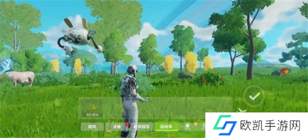 伴随着我们在星球上的登陆,根据任务指引我们可以在月兔处解锁建造机器人,通过指挥建筑机器人我们可以在地基上建造一系列的建筑包括牧场,厨房,仓库等等。