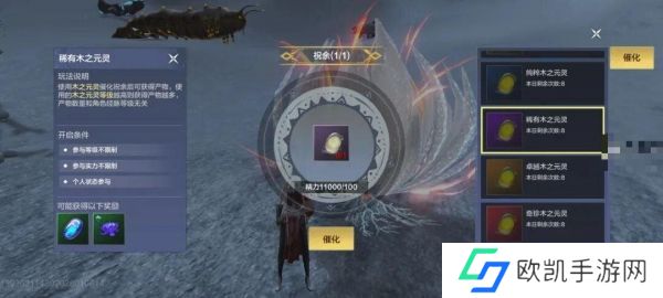 向神草祝余交付木之元灵可获得原气晶石,木之元灵可通过基建种菜获取。需要注意的是,催化祝余和神树挑战共享原气晶石周获取上限,打满后再催化就无法获得原气晶石了。