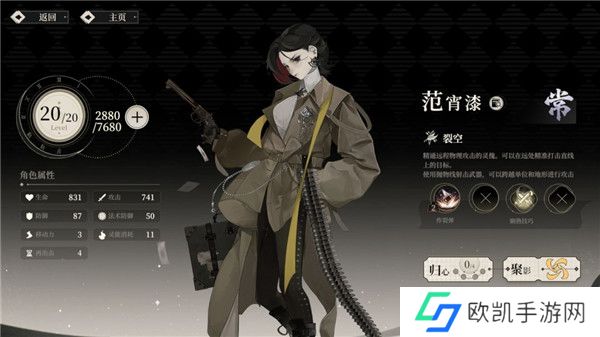 概述:侧重输出的掠影角色,但并非其强项。技能偏向斩杀,需好的前期环境。随着游戏后期,输出收益逐渐下降。但作为掠影职业的一员,其前期作用仍不可忽视。