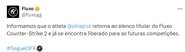 piriajr最初于9月以租借形式加入Fluxo,但由于Fluxo未能及时行使买断选项,他于12月13日回到了Bounty Hunters的替补席。